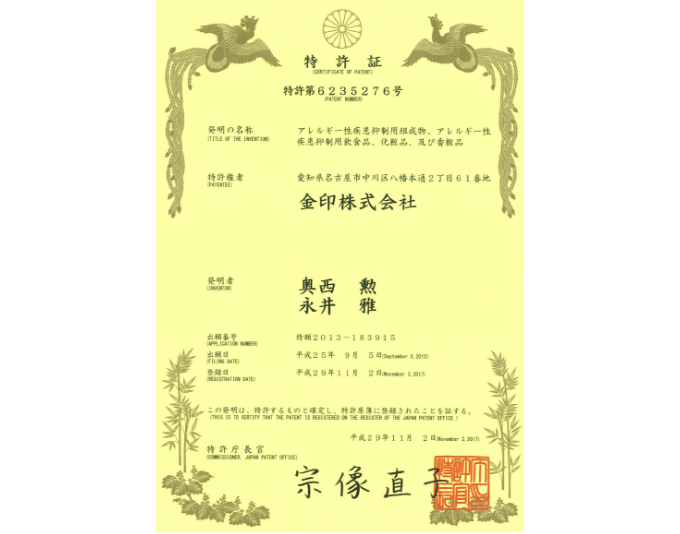 - · Hay fever symptom alleviation effect (Ochanomizu University)