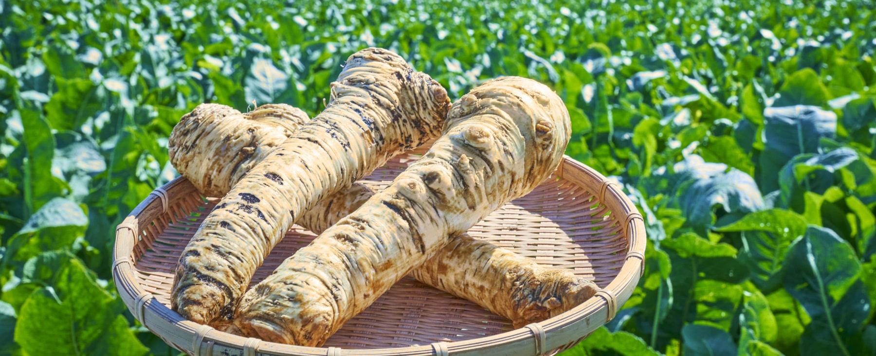 Cultivated Over Three YearsTypically, horseradish is harvested about six months after planting by reusing harvested roots as seed roots the following year. However, KINJIRUSHI's Hakuho™ takes three careful years to cultivate: the first year for seedling preparation, the second year for seed root growth, and the third year for planting and harvesting the seed roots. This ensures consistent quality and delicious, high-quality ingredients.