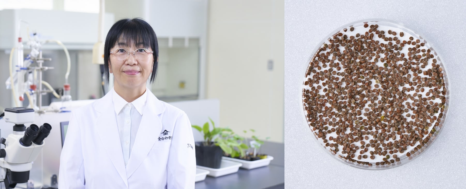 Horseradish rarely produces seeds, historically limiting breeding research. Nevertheless, through continued research aimed at securing high-quality ingredients, we successfully produced horseradish seeds. This breakthrough dramatically expands the possibilities for breeding new varieties. The technology to "create something new" is precisely what defines KINJIRUSHI's strength.