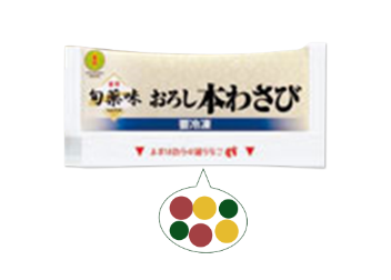 本芥末在研磨时,才会因酶促反应释放辛辣味。研磨后,最美味的香味和辛辣味仅持续短短几十分钟。为了向客户提供新鲜磨碎的香味和辛辣味,金印开发出了"超低温磨碎法",在-196°C下进行芥末磨碎处理。利用这种方法,客户只需解冻即可享受到研磨当时的风味。